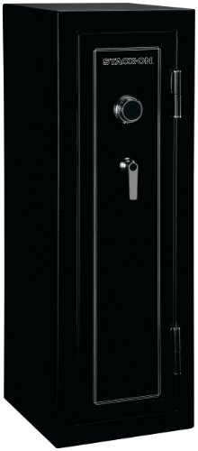 8 - gun Stack - On Safe. 5 locking points and fire resistant protection assure your firearms are "A - OK"! Store and safeguard rifles and shotguns securely for peace of mind! ETL fire rated to manufacturer's specifications for 30 minutes up to 1,400 degree F; Door stripping expands when exposed to high temps, sealing the safe's contents from harm during fire; 3 large, live-action locking bolts and 2 solid steel dead bolts; Solid steel, reinforced pry-resistant door; 3-number combination lock; Drill-resistant hardened steel plate located behind the lock; Fully carpeted; 4 adjustable shelves; Patented barrel rests and standoffs for storing scoped rifles are adjustable to accommodate different gun lengths and allow for better space utilization; Exterior has black epoxy paint finish with gold accents and silk-screen on the door; UL-listed. California DOJ approved; Fastening hardware is included.; Note: Safe must be bolted to the floor to ensure waterproof rating. Get yours today! 18 3/8 x 15 1/4 x 59"h. Internal dimensions: 16 x 9 7/8 x 52 4/5"h. 235 lbs. Please Note: This item is shipped directly from the factory. This is a Heavy / Bulky item. This item will be shipped by commercial carrier curbside. Ships in 1 box: 55" x 19" x 16", 235 lbs. Stack-On 8-gun Safe with Combo Lock